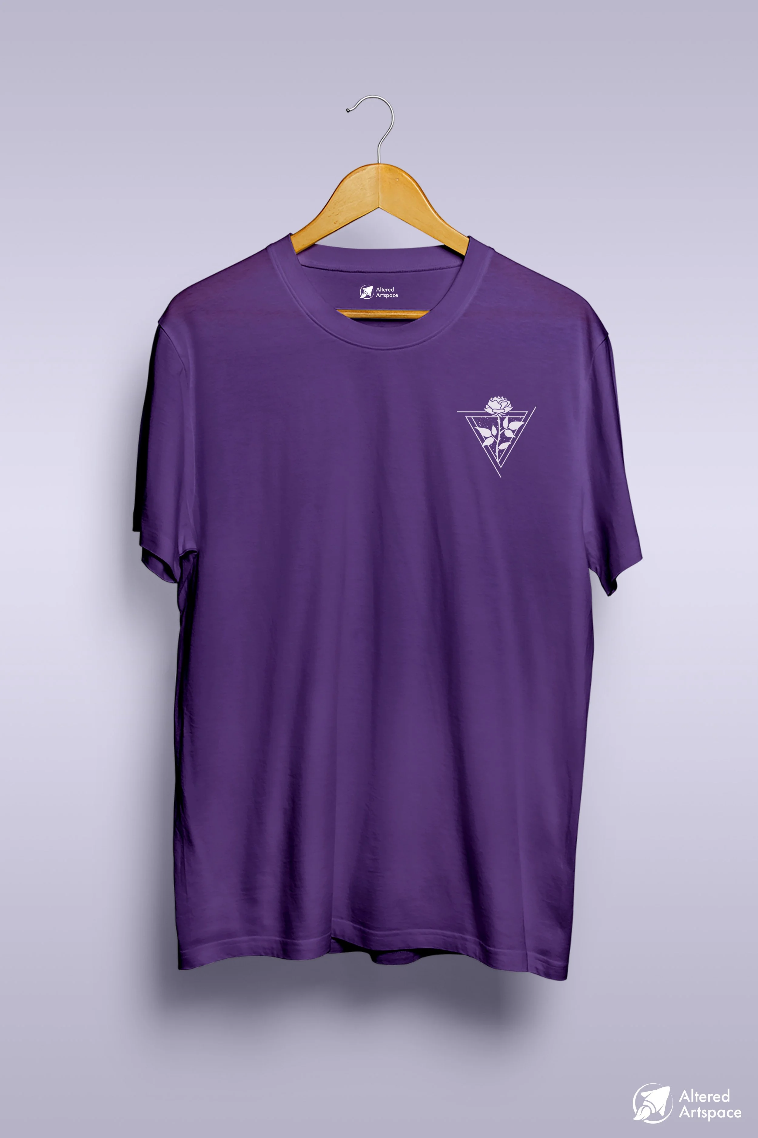 Rose design with specks and infinity triangle border element.
