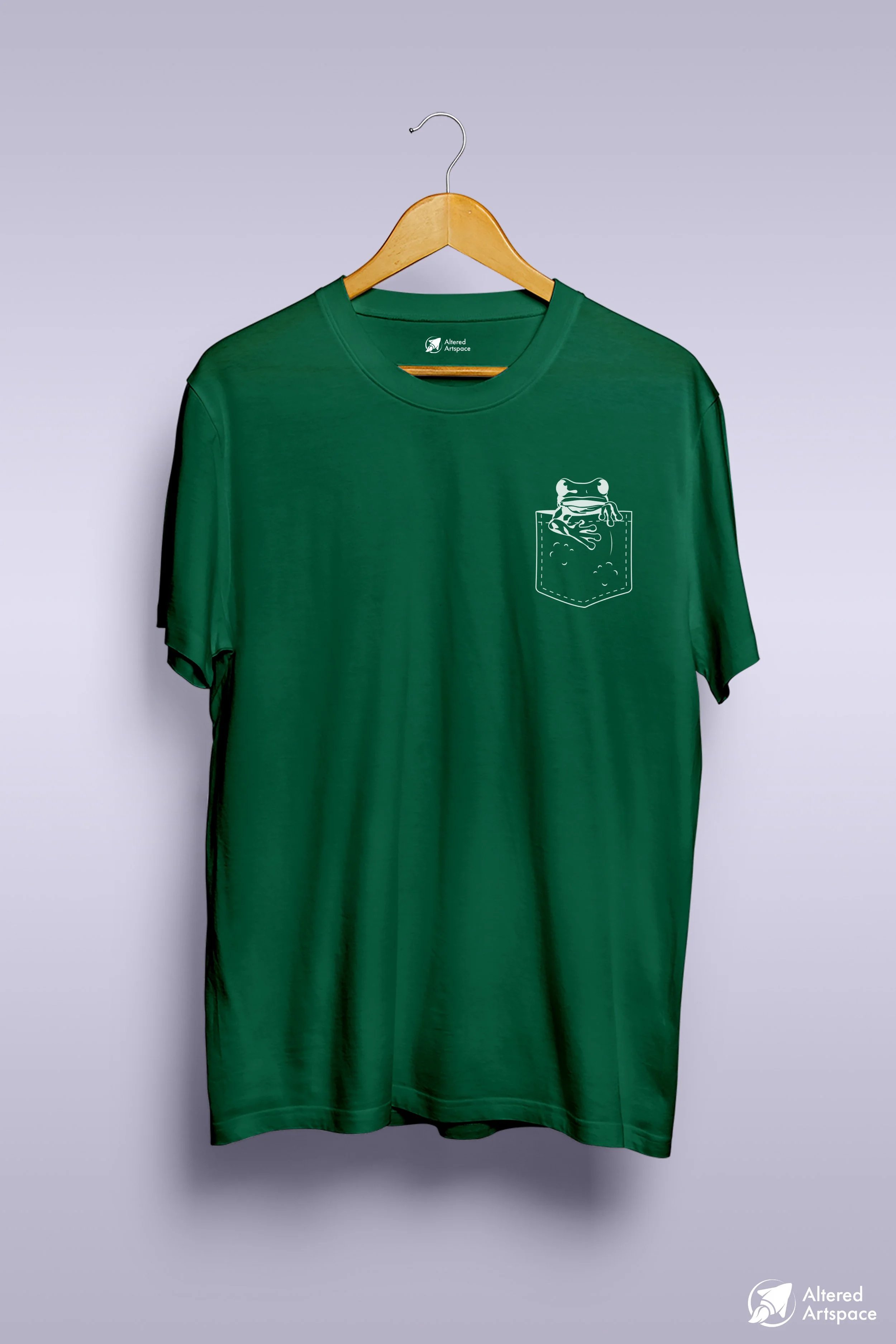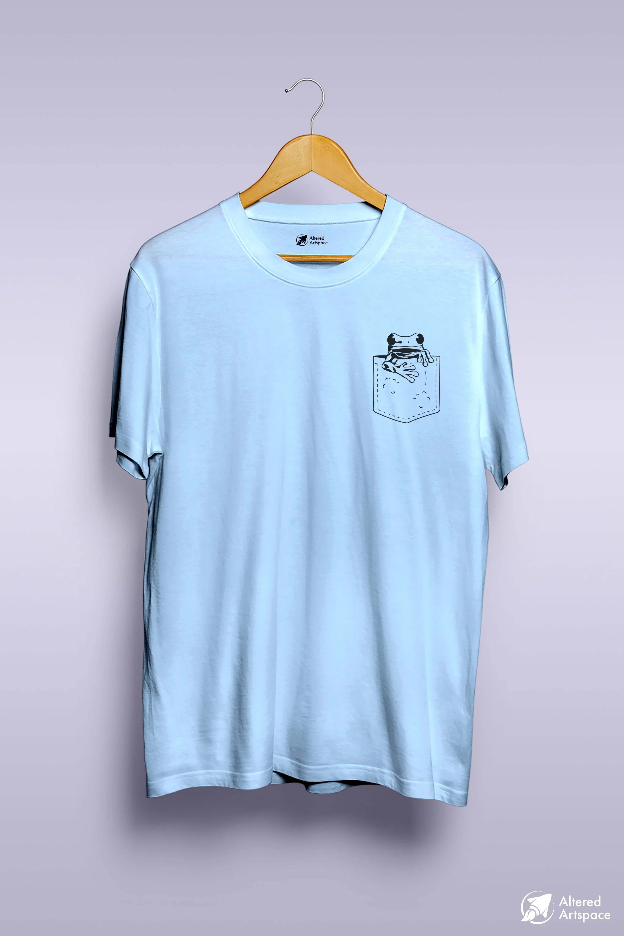 Frog sitting in a t-shirt pocket design.